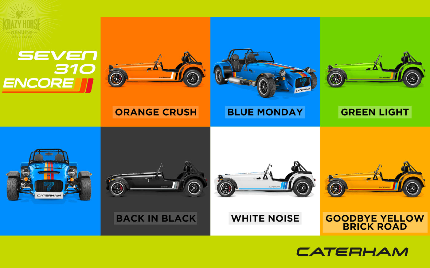 Use the Caterham Configurator to design your ultimate Seven and remember to select Krazy Horse as your preferred dealer.